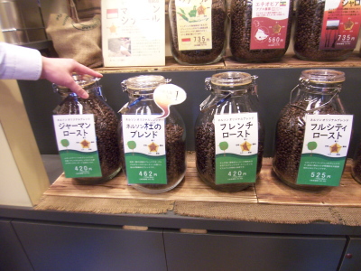 JR仙台駅前にもあるんですが、行ったのは中山本店。仙台駅から結構離れているにもかかわらず、タクシーの運転手さんに「中山のネルソンコーヒーに…」と告げただけであっさり通じたぐらい、市内で親しまれているお店のようです。カフェではなくて、珈琲豆の販売のお店です。気取ってなくて入りやすく、POPとかも楽しいお店。