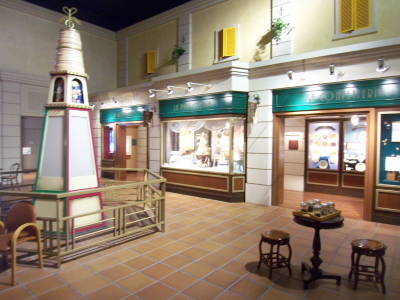 外国の街並みのような場所に出てくるのですが、ここに外国のお菓子にまつわる歴史や雑学がズラリ。10世紀頃にアラビアで砂糖づくりが始まり、ヨーロッパでは金に並ぶ価値で薬のように扱われていた、とか。