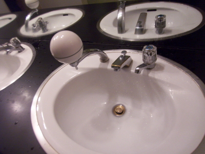 みんな手を出したままで一瞬動きが止まる 日常の発想源 2009.07.28 Tweet 手を洗おうと思ったら、なんか違和感が。 これ、水が出てくるのは右の蛇口でした。真ん中のは何なんだよっ! Tweet