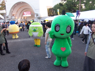でも、会場のあらゆるところにいたゆるキャラは、ほとんど知らず…。九州から上京してン年が経ちますが、いつの間にこんなゆるキャラが増えたんでしょう…。あ、この手前に写っている緑色のは、大分県の「かぼたん」です。これだけは知ってた。かぼたんはカボチャじゃなくて、カボスです。