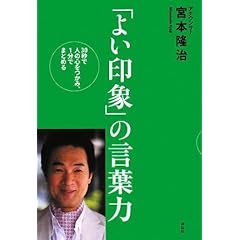 昨日「ビジネス発想源」で紹介した本が、紅白歌合戦の総合司会をされたことでもおなじみ、元NHKアナウンサー宮本隆治氏の著作『「よい印象」の言葉力』。ご興味を持って下さった方が多かったようで、当日はamazonのヒット商品(順位上昇率)ランキングで1位になってました。