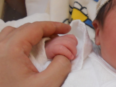 ちょっとは運動になるからと無謀にも病院まで歩いていって診てもらったところ、「もうかなり開いてますよ。これは早くても午前3時、まあ午前5時前後には産まれるでしょう」とのこと。それが12時前だったので、うわー早いなあと思っていたら、なんと午前1時にポーンと産まれてきました。早くて3時どころじゃない。来院1時間、どんだけ早いんだ。病院の方々も驚きの超スピード安産でした。3500gぐらいの元気な男の子です。