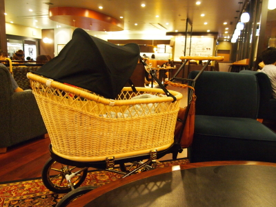 ちなみに、個人的に気に入っているのはスターバックスのアクアシティお台場店。カフェは普通は机や椅子がごちゃごちゃしてベビーカーでは入りにくいものですが、ここのスターバックスは車椅子の方に向いているのか、店内の備品がルノアール並みに広々と置かれていて、ソファー率も高いので、ベビーカーの人もかなりゆっくりできます。