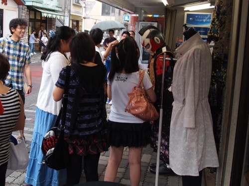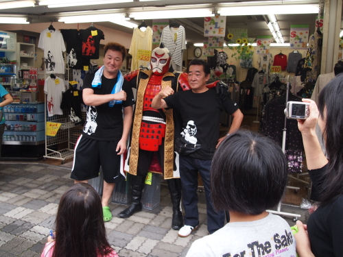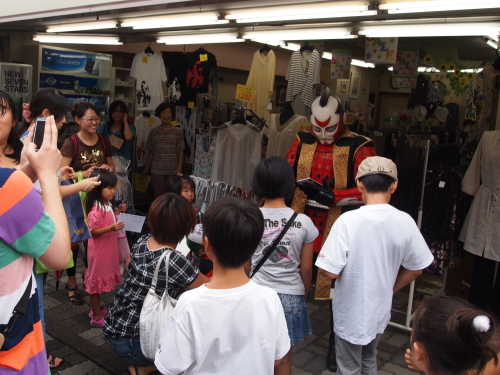 女子高生たちからも大人気のセッシャー1。それにしても、セッシャー1の静岡市内での知名度は凄まじい。私は見ることはできなかったのですが、この後はセッシャー1のライバルであるスプラッシュ星人もやってくると言ってましたよ。ちなみにここ、イベント会場でも何でもなくて、商店街の中にある普通の婦人服店の前です。