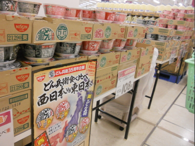 こういう企画が出てくる背景には、ご当地のものを食べてみたいという「ご当地ブーム」があると思うんですけど、それと同時に、例えば私のように九州出身で東京在住といった、東西どちらにも住んでいたという人が増えていることがあると思います。旦那が西日本出身で奥さんが東日本出身だったら「俺が育った味はこんな感じだ」とか話が盛り上がりますからね。ちなみに私もこの企画を見てどちらのどん兵衛も買ってしまいましたから、やっぱり興味引きますね…。