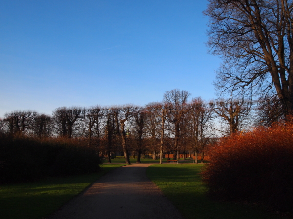 デンマークの首都コペンハーゲンを散策中。アマリエンボー宮殿から北西に向かい、クロンプリンセス通りを横切って、ローゼンボー公園に入ります。