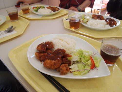 で、梶研吾先生、女優の上良早紀さん、俳優の白鳥祐司さんと4人で学食ランチに行くことに。いやあ学食なんて何年ぶりだろ…。ほんと安くて美味い。学食の全ての席にコンセントが常備してあるのがいいですね。さすが工科大学。