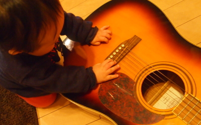生後9ヵ月の子どもですが、どんなにカラフルな玩具よりも、ビニール袋とかティッシュの空き箱といったゴミ類、ギターやリモコンといったその辺の器具のほうが、長く遊んでくれてます。今のところ、ギターは弦楽器ではなく打楽器として使われてますけど。