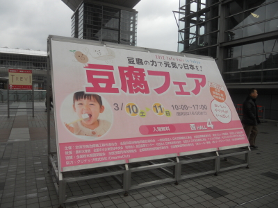 東京ビッグサイトで開催されていた豆腐フェアに行ってきました。昨年は3月12日に開催予定だったのに前日の大震災により中止となり、待望の再開となりました。全国各地の豆腐業界の企業や組合が多数出展していました。普通の食品関係のイベントよりも、試食や味見に太っ腹なブースが多くて気持ちがよかったです。