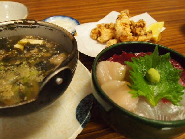 そして、北海丼にゴッコ汁、奥にはカスペの唐揚げ。ゴッコとはホテイウオのこと、カスペとはエイのことらしいですね。いやあ、どれも美味しかった。そして、周囲の地元民のお客さんが、みんな子どもに優しく接してくれて、安心して食べられた上に、いろんな地元情報を頂けました。観光客相手の店だともっと高かっただろうなあ。