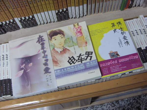 当時の和書コーナーには、『電車男』『在世界中心呼俟愛』『博士的愛情算式』などの日本のベストセラーが売られていました。懐かしいなあ。