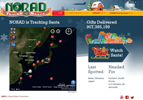 ところが今年は、NORADがGoogle mapからMicrosoftに乗り換えるというニュースを聞いて、