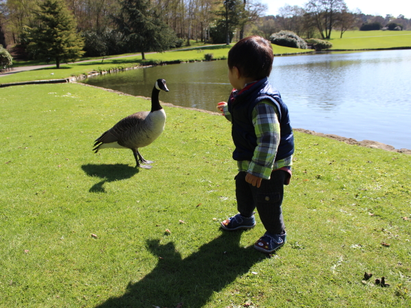 間もなく2歳になる我が子も、すぐ近くまで近づける鳥たちに興味津々。