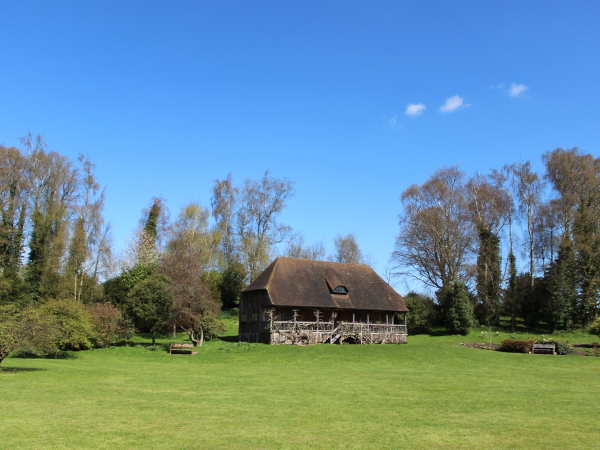 リーズ城へ向かう小路の脇の草原にぽつんと建っている小屋。