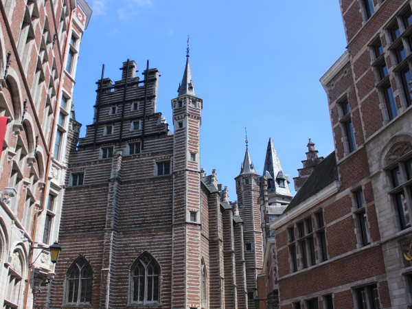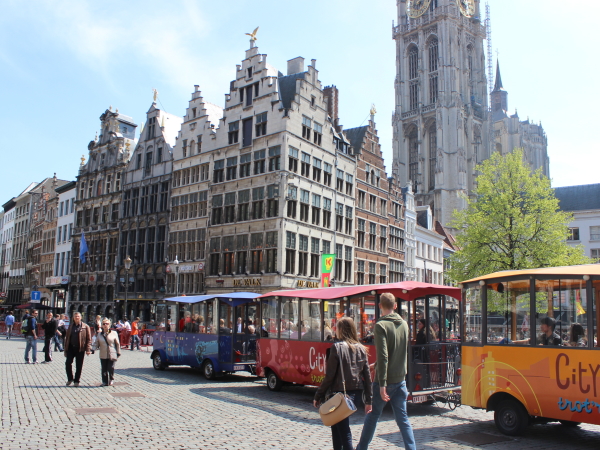 市庁舎前にあり、アントワープで最もにぎわうマルクト広場から、