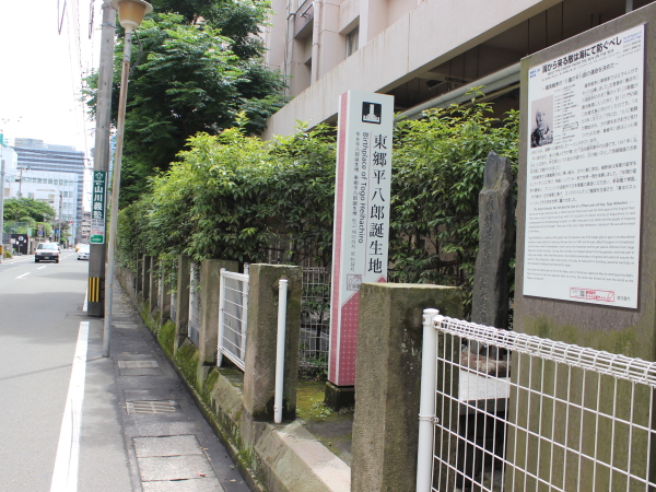 同じく県立中央高校の敷地沿いにある、東郷平八郎の誕生地の碑。