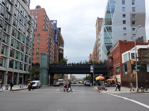 ハイラインから降りてみると、下からはこんな感じで見えます。