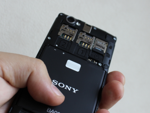 裏のバッテリーパックを外すと、SIMカードとmicroSIMを入れるスロットがあります。