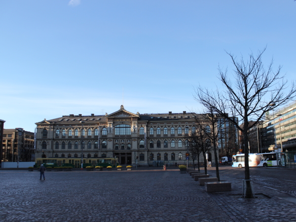 バスがたくさん停まっていますが、ヘルシンキ空港へのエアポートバスなんかが出てます。